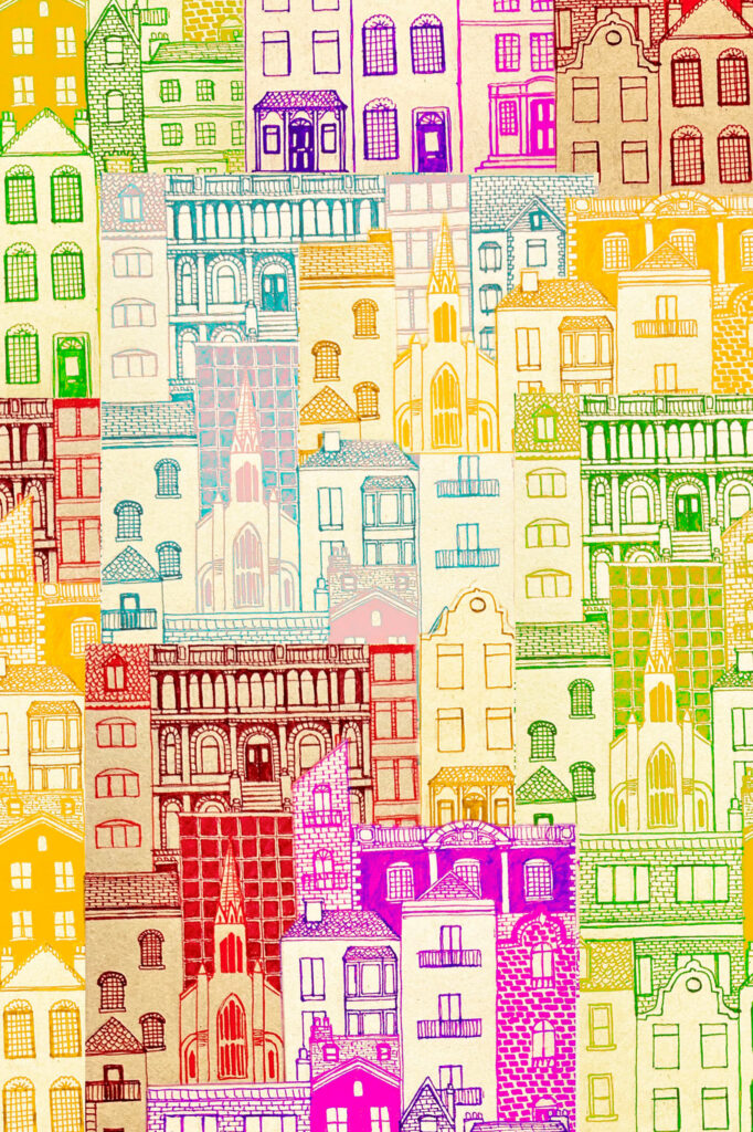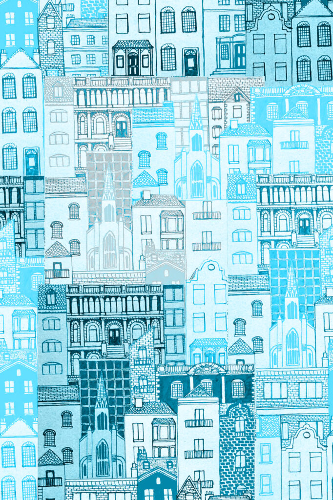 I designed this pattern to look like a Townhouse/Cityscape with different colour versions. I made sure the different houses and buildings fitted together to work as a repeat pattern.